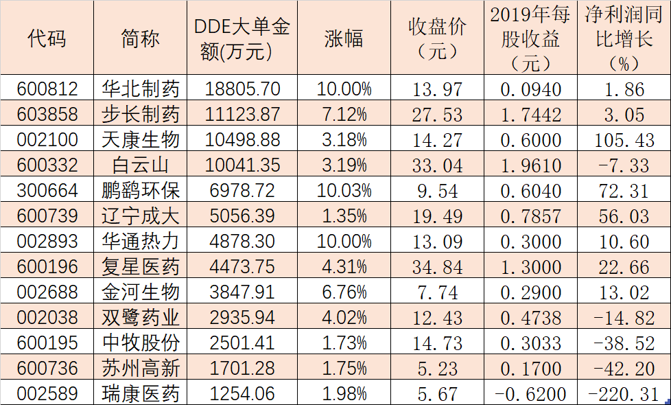 部分市場主流資金紛紛涌入疫苗概念股搶籌。6月17日,板塊內共有27只概念股呈現大單資金凈流入態勢,華北制藥、步長制藥、天康生物、白云山等4只概念股當日均受到1億元以上大單資金布局,鵬鷂環保、遼寧成大、華通熱力、復星醫藥、金河生物、雙鷺藥業、中牧股份、蘇州高新、瑞康醫藥等9只概念股大單資金凈流入也均逾1000萬元,這13只概念股合計吸金8.41億元。