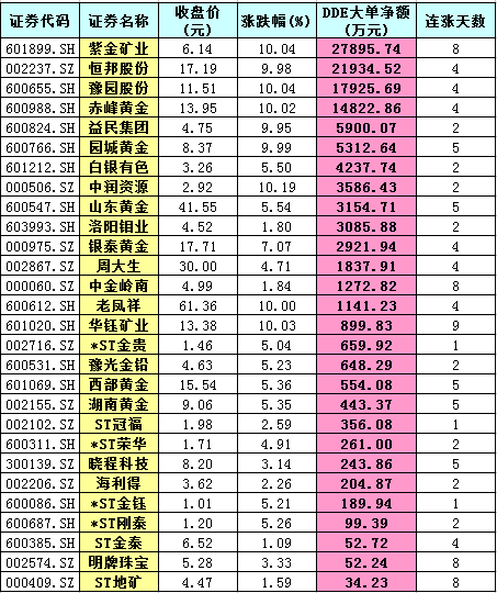 事實上,面對節節攀升的金價,蟄伏已久的黃金股也終于在進入7月份后快速啟動。數據顯示,7月份以來的7個交易日中,黃金板塊整體漲幅達到22.97%,僅7月9日就漲逾6%,迅速搶占大智慧板塊漲幅榜前列,板塊內成份股全線飄紅實現普漲,包括中潤資源、紫金礦業、赤峰黃金、老鳳祥、園城黃金等在內的12只黃金股以漲停價報收。