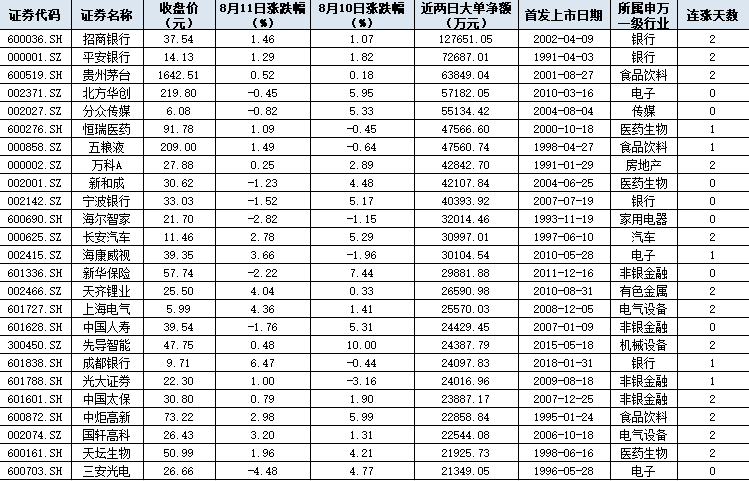 8月11日兩市機構大單搶籌40股(名單)2020-08-11 15:13