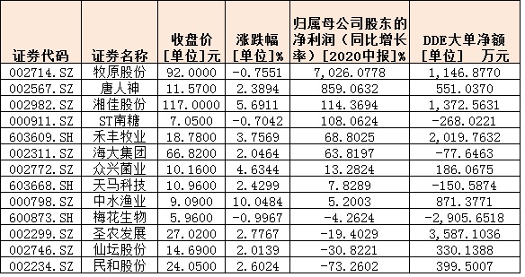 《證券日報》記者根據同花順統計發現,截至8月13日,有13家農業類上市公司披露中報業績,其中,9家公司上半年凈利潤實現同比增長,牧原股份以上半年凈利潤同比增長7026.08%位居首位,緊隨其后的是唐人神、湘佳股份和ST南糖等3家公司上半年凈利潤同比增長均超100%,分別為,859.06%、114.37%和108.06%。