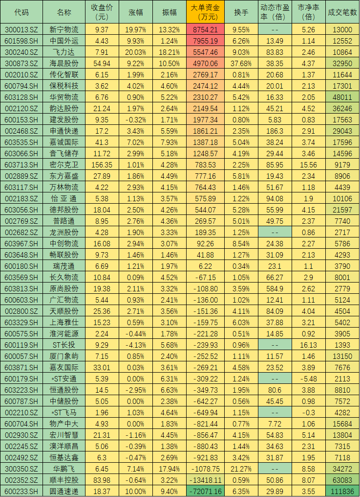 圓通與阿里9月1日達成的戰略合作對圓通速遞A股市場的股價和大單資金流向都產生了巨大影響。圓通速遞在尾盤30分鐘進入漲停狀態,并維持到收盤。周三巨大震蕩和上漲引起了部分投資者的快速離場,該股單日大單資金凈流出達7.21億元,是物流板塊整體凈流出4.6億元的1.57倍,即因為圓通速遞物流板塊才呈凈流出狀態。