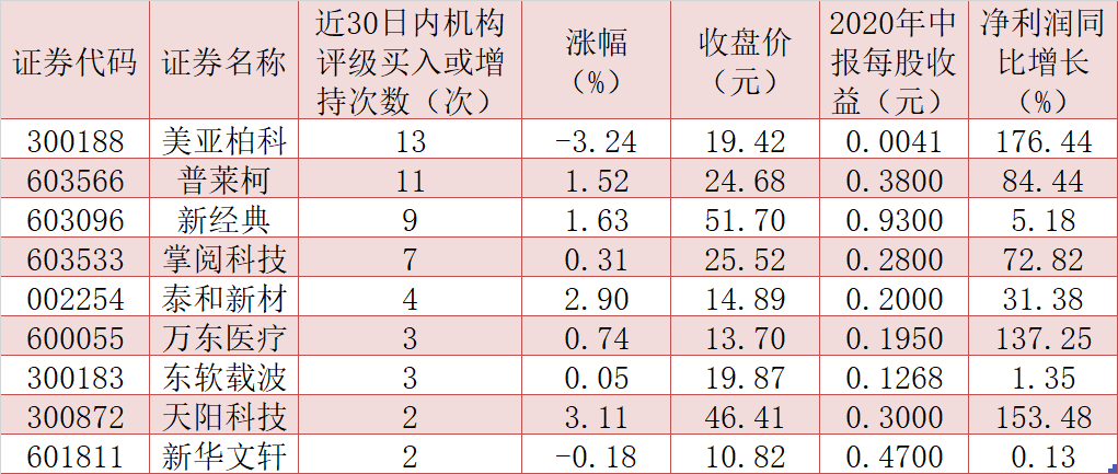 值得一提的是,上述上半年業(yè)績(jī)實(shí)現(xiàn)同比增長(zhǎng)的24家公司后市機(jī)會(huì)獲得機(jī)構(gòu)的高度關(guān)注,美亞柏科、普萊柯、新經(jīng)典、掌閱科技、泰和新材、萬(wàn)東醫(yī)療、東軟載波、天陽(yáng)科技和新華文軒等9只業(yè)績(jī)?cè)鲩L(zhǎng)股近30日內(nèi)被機(jī)構(gòu)推薦,后市配置機(jī)會(huì)優(yōu)勢(shì)顯著。