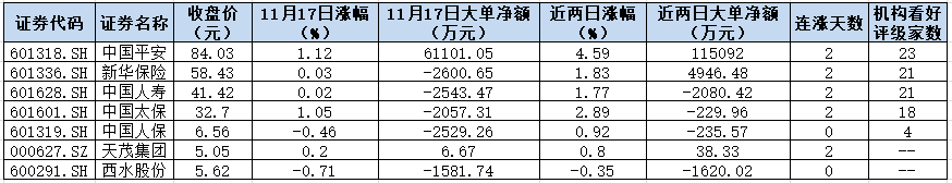 這一觀點也得到了資金的認可?!蹲C券日報》記者根據同花順數據統計發現,近兩個交易日,保險板塊呈現大單資金凈流入態勢,合計凈流入11.59億元。具體來看,中國平安期間大單資金凈流入居首,達到115092萬元,新華保險緊隨其后,大單資金凈流入4946.48萬元,這兩只個股合計吸金超過12億元。