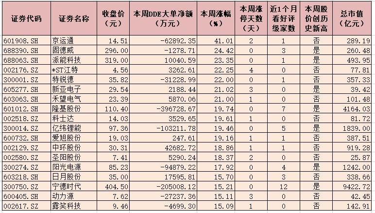 表:本周漲幅超15%電氣設(shè)備行業(yè)個股一覽