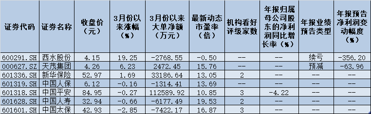 雖然目前保險(xiǎn)行業(yè)業(yè)績(jī)尚未完全拉開面紗,但相關(guān)上市公司股價(jià)表現(xiàn)已嶄露頭角。3月份以來(lái),保險(xiǎn)股悉數(shù)跑贏大盤,其中,西水股份、天茂集團(tuán)、新華保險(xiǎn)等3只個(gè)股更是逆市上漲,期間累計(jì)漲幅分別為19.25%、6.23%、1.69%。