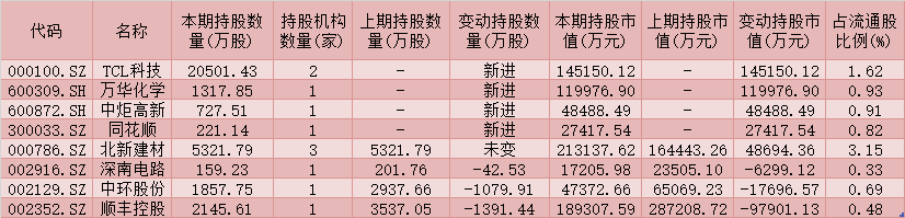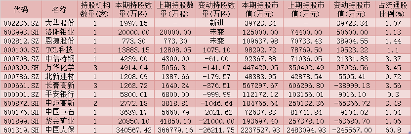 社保基金持倉方面,在已披露2020年年報的滬深300指數成份股中,截至去年四季度末,有13家公司獲社保基金持倉,社保基金新進持有大華股份1997.15萬股;社保基金繼續對TCL科技進行加倉操作,增持數量達1075.10萬股,最新持股數量達到13883.15萬股;洛陽鉬業、恩捷股份等2只個股本期社保基金持股數量未變,分別為20000萬股、773.30萬股,中國人保、紫金礦業、中國巨石、中炬高新、平安銀行、長春高新、北新建材、萬華化學、中信特鋼等9只個股本期被社保基金減持。