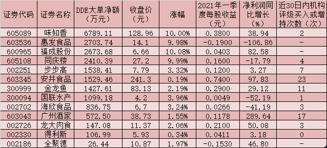 制表:5月18日實現大單資金凈流入的預制菜概念股一覽