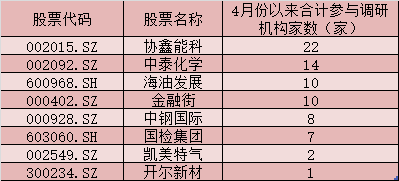 表:4月份以來(lái)獲機(jī)構(gòu)密集調(diào)研的碳交易概念股