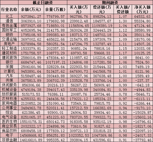 六、截至7月19日申萬一級行業(yè)兩融交易情況