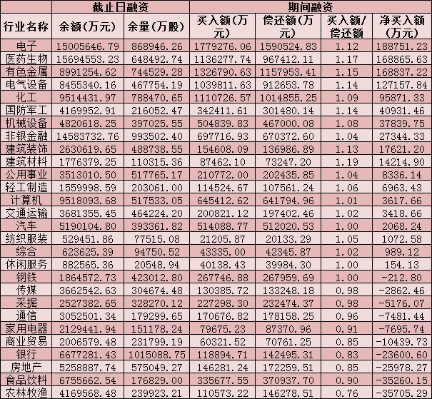 六、截至7月22日申萬一級(jí)行業(yè)兩融交易情況