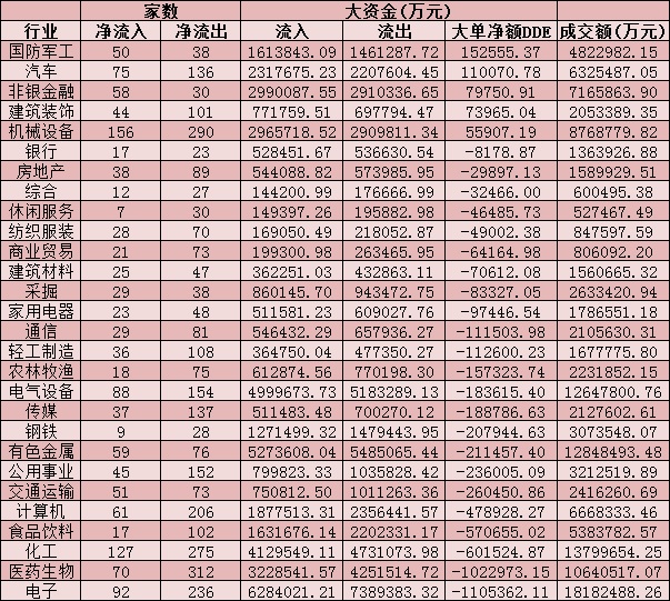 二、周五(7月23日)申萬一級(jí)行業(yè)大單資金流向