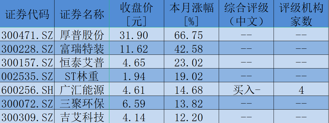 本月以來截至8月17日,頁巖氣板塊表現比較出色,期間累計上漲7.73%,跑贏上證指數(漲幅1.46%)。具體到個股方面,包括厚普股份(66.75%)、富瑞特裝(42.58%)、恒泰艾普(23.02%)、ST林重(19.02%)和廣匯能源(14.68%)等在內的7只個股漲幅均超過10%;包括遼寧成大(9.58%)、天富能源(8.91%)、道森股份(8.59%)、海默科技(8.49%)、東華能源(8.30%)等在內的13只個股漲幅也超過5%。
