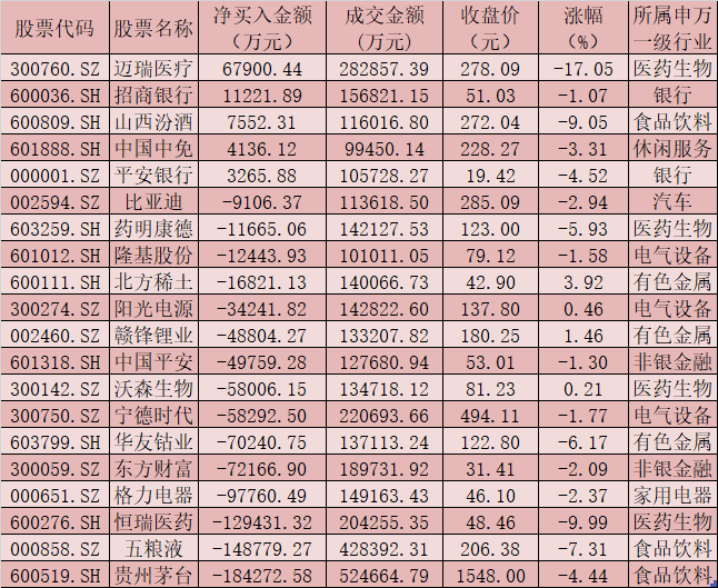 四、周五(8月20日)滬、深股通前十大成交活躍股交易情況