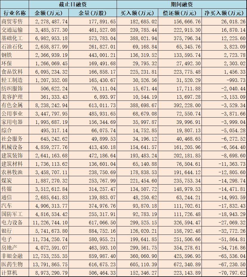 表:4月13日申萬一級行業(yè)兩融交易情況: