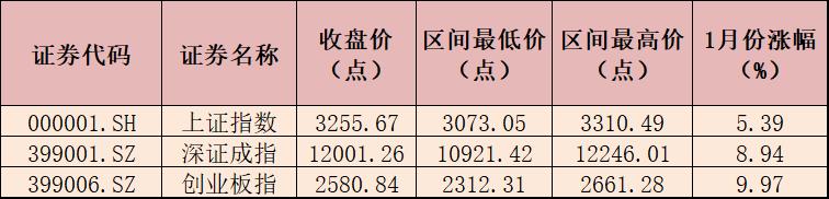 1月份,A股市場整體表現較好,同花順數據顯示,A股三大指數期間均實現上漲,其中,上證指數期間累計上漲5.39%,創2010年以來歷年1月份最高漲幅,深證成指期間累計上漲8.94%,創業板指期間累計上漲9.97%。