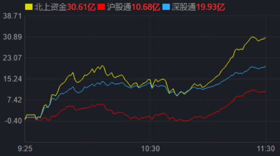 從資金面來看,2月1日上午,北上資金凈買入金額達(dá)30.61億元,其中,滬股通凈買入10.68億元,深股通凈買入19.93億元。