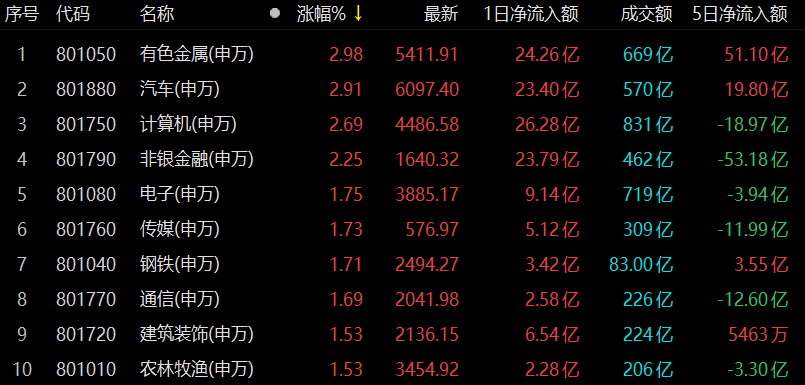 2月1日,A股三大指數收紅,成交額再上1萬億元,北上資金繼續凈買入近70億元,申萬一級行業普漲,有色金屬與汽車等表現強勢。業內人士表示,待到近期各方籌碼交換完成,大的行情啟動就會基本確立。