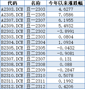 表:國內(nèi)大豆主要期貨品種漲跌幅一覽