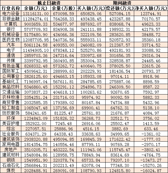 表:2月20日申萬一級行業兩融交易情況: