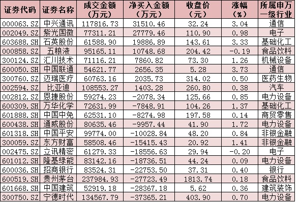 表:今日滬、深股通前十大成交活躍股交易情況: