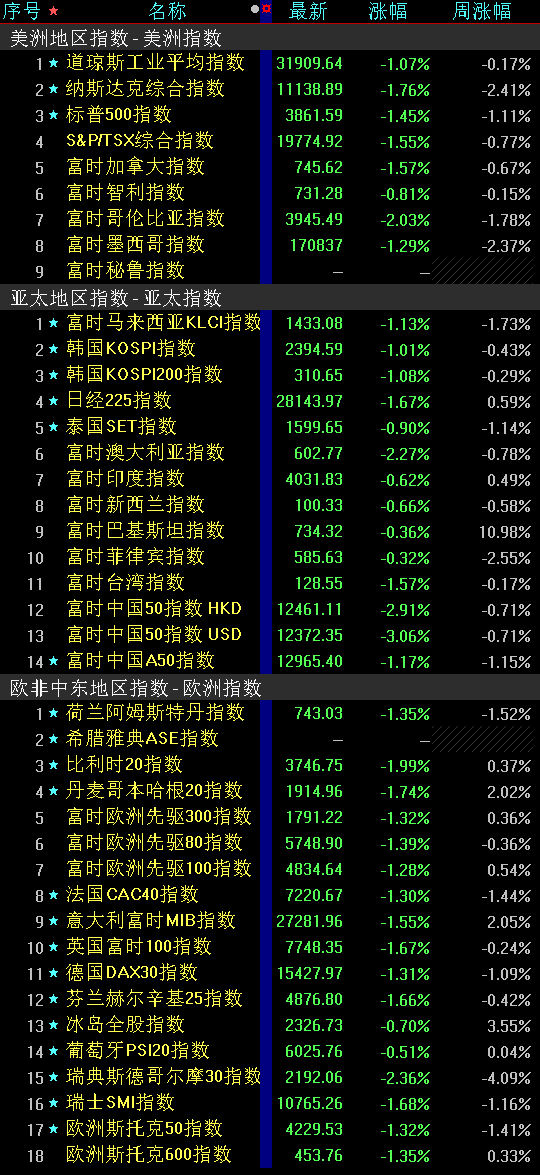 華西證券表示,本周美股市場回調幅度較大,周內和日內波動加劇。目前標普500席勒市盈率為29.71倍,仍明顯高于歷史平均數和中位數。由于美股估值壓力未充分消化,美國企業盈利下行的壓力仍然存在,且金融系統端的潛在壓力增加,疊加美聯儲的加息進程還將延續,預計未來一段時間美股大盤仍將出現進一步回調。考慮到金融系統端的壓力上升,美股金融股未來一段時間可能波動趨于加劇。此外,多數美股成長行業和價值行業將會面臨進一步壓力。建議現階段暫時對美股市場采取偏謹慎的觀望態度。本周歐洲多數市場出現回調。考慮到美股回調壓力的聯動因素,疊加歐洲經濟趨于進一步疲軟且流動性趨于進一步收緊,未來一段時間歐洲多數重要市場指數還將出現回調;前期回調幅度不夠充分的德國DAX、法國CAC40、英國富時100、意大利富時MIB等歐洲多數重要市場指數容易出現進一步的明顯補跌。此外,加拿大S&P/TSX綜合指數、澳洲標普200、日經225等發達市場還將出現波動。考慮到經濟仍存在一定壓力,且美聯儲加息進程還在推進,一些拉美、東南亞等海外新興市場股債匯市場還將受到一定沖擊。