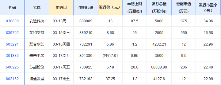 新股方面,根據發行安排,A股市場下周將有6只新股申購。