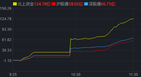 從資金面來看,3月17日上午,北上資金凈買入金額達124.78億元,其中,滬股通凈買入58.02億元,深股通凈買入66.75億元。