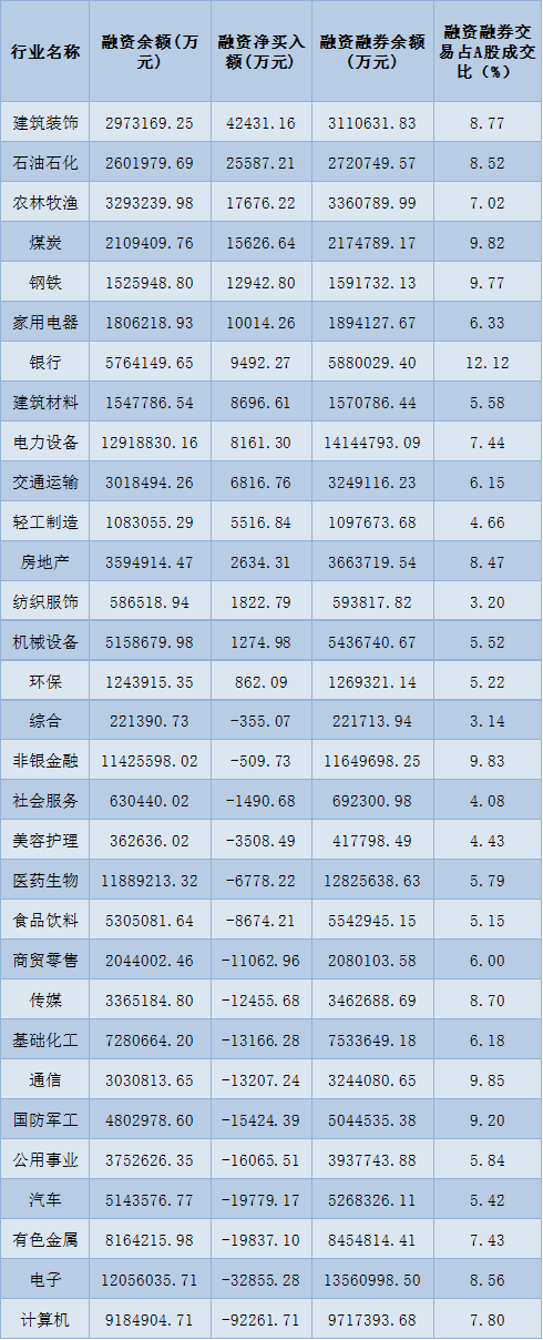 表:3月16日申萬一級行業兩融交易情況:
