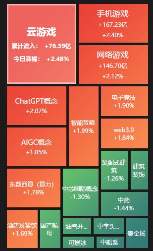 具體看,截至3月24日上午收盤,云游戲板塊漲幅居首達2.48%。其中,盛天網絡、湯姆貓等概念股漲幅均超8%。