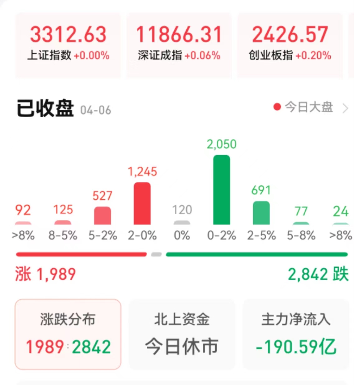 周四(4月6日),A股三大股指呈現震蕩整理態勢。截至收盤,上證指數平收報3312.63點,深成指微漲0.06%報11866.31點,創業板指漲0.2%報2426.57點,兩市合計成交金額達11933億元,連續第3個交易日突破萬億元。值得關注的是,今日科創50指數繼續上行,漲幅達1.58%,走出六連陽??傮w上看,兩市個股跌多漲少。其中,漲停個股達31只,跌停個股達15只。