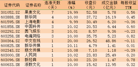 表:4月11日傳媒行業(yè)漲停個股一覽