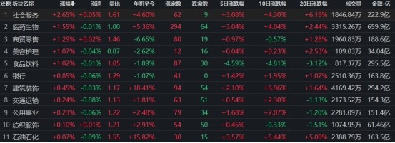 4月13日,行業跌多漲少。從31類申萬一級行業看,有11類行業上漲,20類行業下跌。上漲方面,社會服務行業居首,漲幅達2.65%,另有,醫藥生物、商貿零售、美容護理、食品飲料業漲幅也均超1%。下跌方面,通信、電子行業居前,跌幅分別為3.71%、3.37%,計算機行業跌幅居第三位,為3.74%,另有家用電器、機械設備、建筑材料、非銀金融、有色金屬等行業跌幅均超1%。