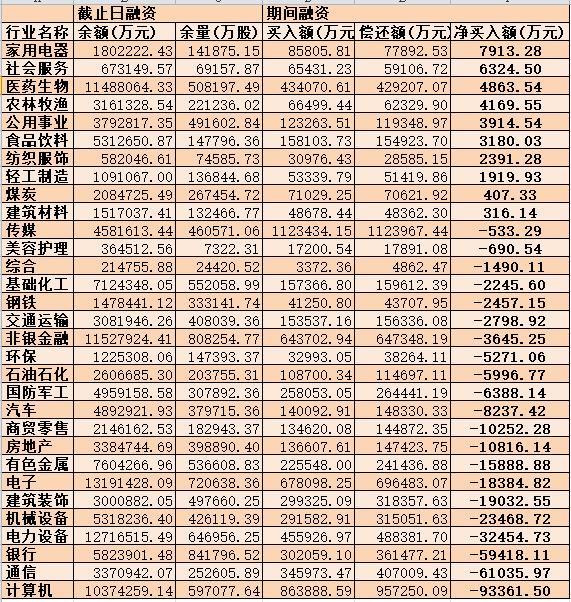 表:5月5日申萬一級行業兩融交易情況: