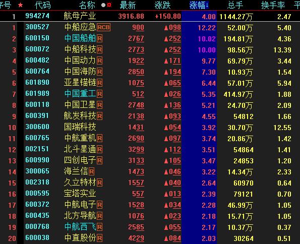 具體看,截至5月8日上午收盤,航母產業板塊漲幅居首達4%。其中,中船應急、中國船舶、中船科技等多只概念股漲幅均超10%。