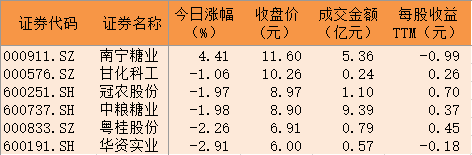 A股市場方面,據(jù)同花順iFinD數(shù)據(jù)顯示,5月22日,糖業(yè)板塊內(nèi)6只個股中,南寧糖業(yè)、中糧糖業(yè)雙雙漲停,粵桂股份、華資實業(yè)均漲超5%。5月23日,糖業(yè)板塊內(nèi),僅南寧糖業(yè)收漲,漲幅4.41%。