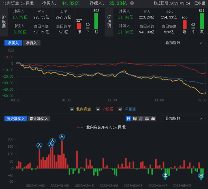 縮量下跌!北向資金凈賣出近80億元,機(jī)構(gòu):兩大誘因致A股回落2023-05-23 18:18