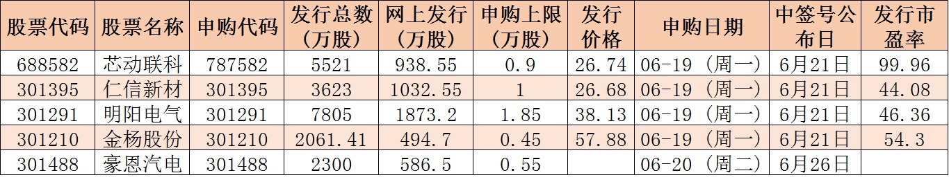 根據發行安排,下周有5只新股發行,周一發行4只,周二發行1只。