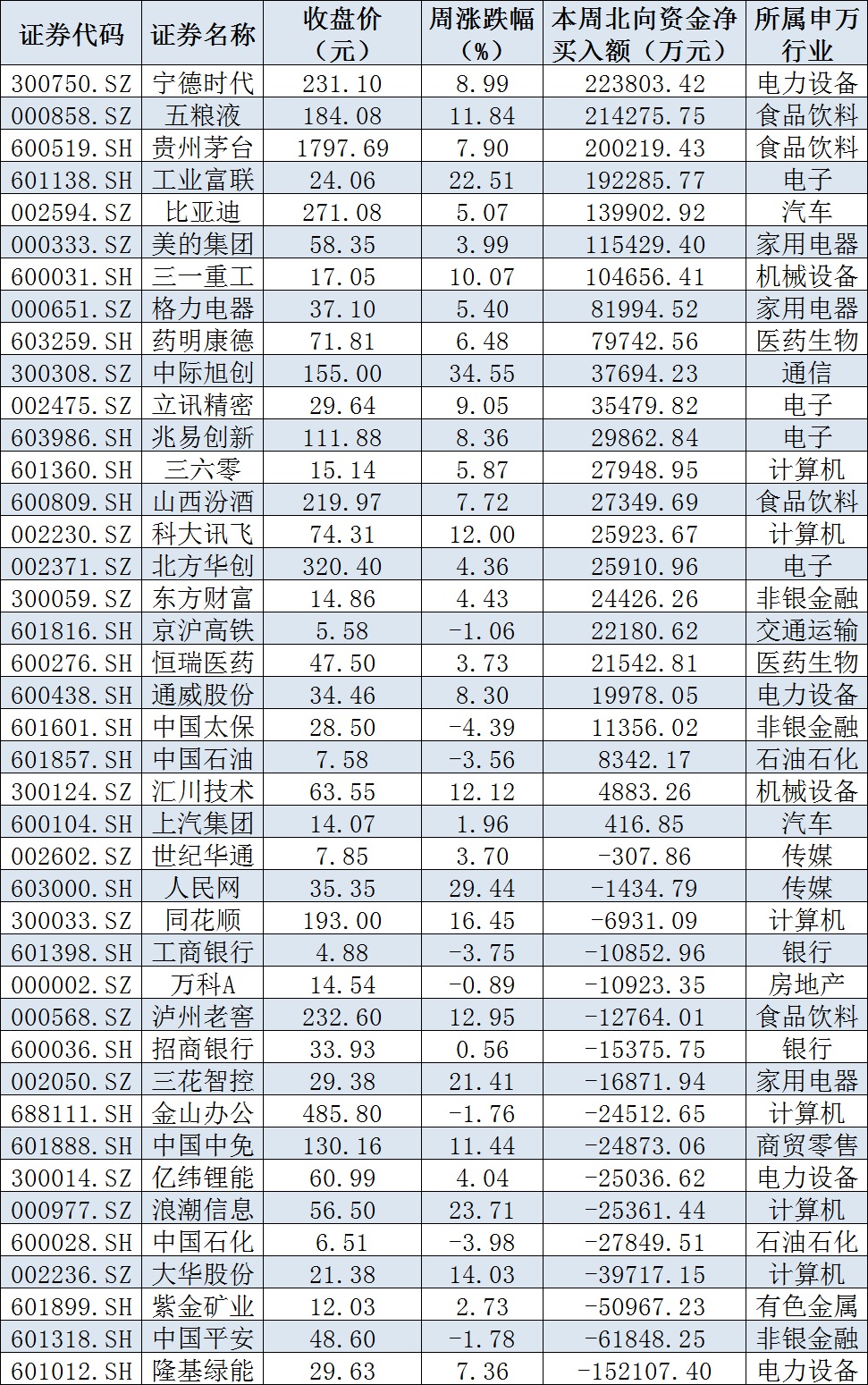 資金方面,本周,北向資金合計凈買入金額達143.91億元,創3個月來新高。6月16日,北向資金凈買入金額達105.46億元,為近4個月來最高。從前十大成交活躍股來看,寧德時代、五糧液、貴州茅臺等3只個股,北向資金凈買入金額均超20億元。另外,隆基綠能、中國平安、紫金礦業等個股遭北向資金凈賣出金額均超5億元。