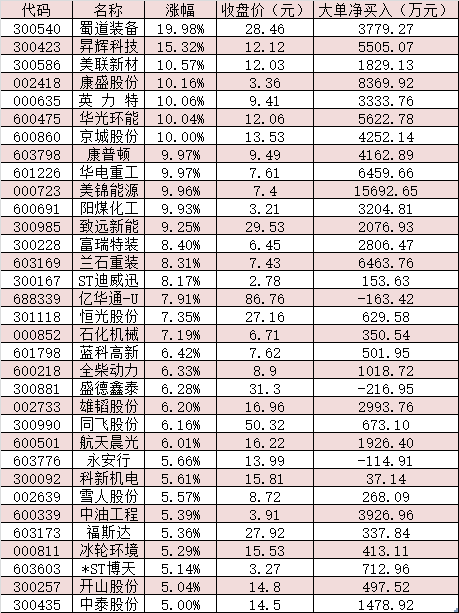 同時,氫能源板塊的走強也獲得了大單資金的追捧。6月27日,氫能源板塊整體呈現大單資金凈買入態勢,合計吸金6.56億元。其中,美錦能源、康盛股份、雙良節能、蘭石重裝、華電重工、華光環能、昇輝科技等7只概念股大單資金凈買入額均超5000萬元。