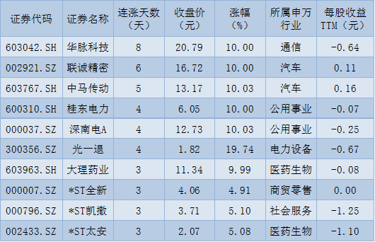 漲停股方面,今日有43只個股以漲停價報收,其中,有10只個股,股價已連續上漲超過3個交易日;跌停方面,有14只個股跌停價報收。從申萬一級行業看,汽車行業漲停股數量居首,達7只,緊隨其后的是機械設備和公用事業行業,漲停股數均為5只。