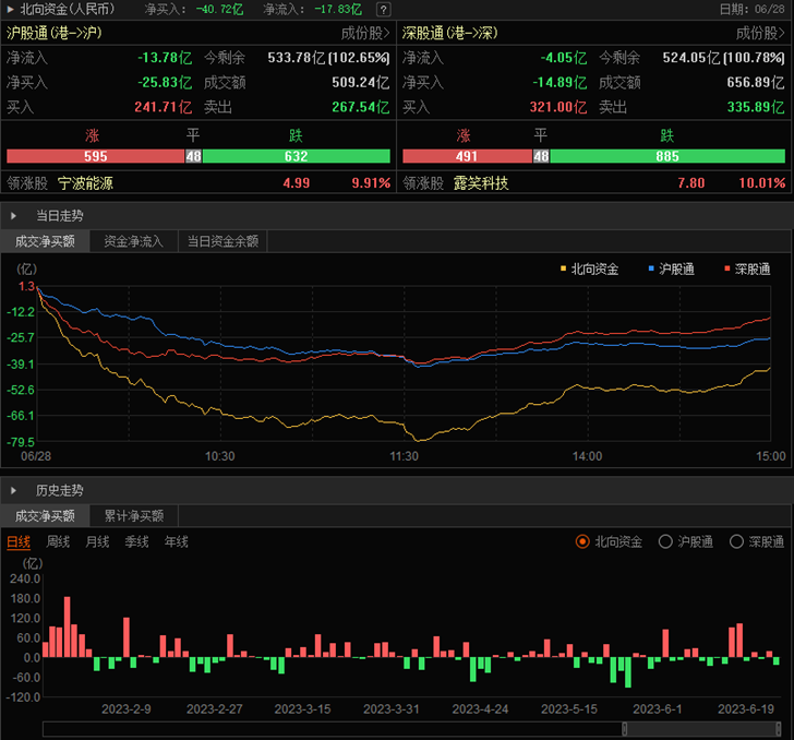 6月28日,滬指早盤出現快速下跌,最低至3157.12點,隨后企穩回升,午盤后一度翻紅。最終,上證指數平盤報收3189.38點;深證成指跌0.47%報10926.32點,創業板指跌0.44%報2182.10點。A股合計成交額8897.09億元,較前一交易日增長5.63%;北向資金全天凈賣出40.72億元;其中滬股通凈流出25.83億元,深股通凈流出14.89億元。