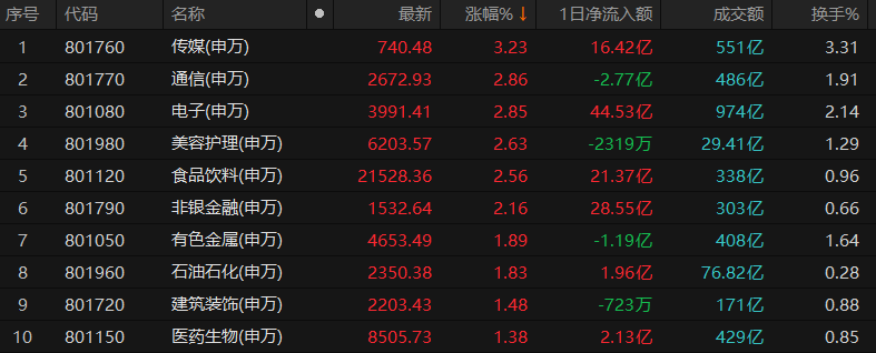 傳媒行業(yè)漲3.23%居首