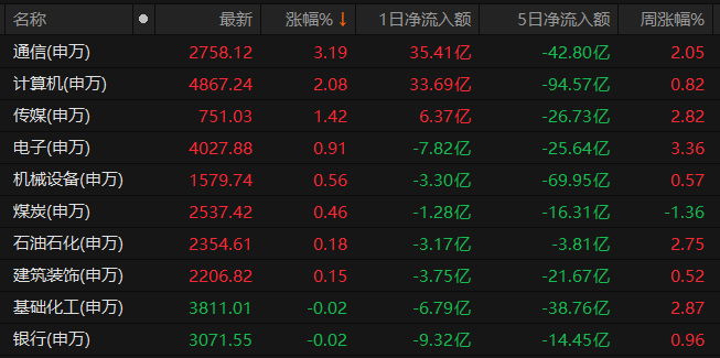 7月14日,行業漲少跌多。從31個申萬一級行業看,有8個上漲,占比25.81%,通信行業漲幅居首,達3.19%,大單資金凈流入35.41億元,此外,計算機行業漲幅也超2%。下跌方面,電力設備行業居首,跌幅為1.56%,此外,汽車和社會服務等2個行業跌幅也均超1%。