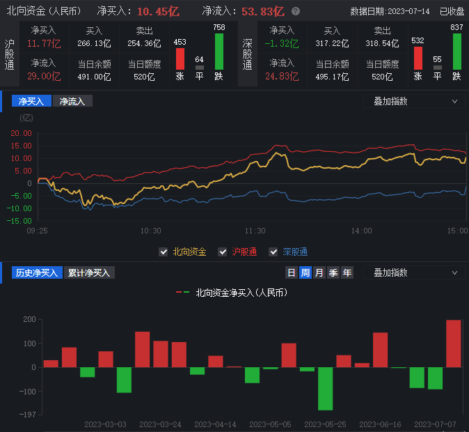 7月14日,A股三大指數震蕩分化。個股漲少跌多,北向資金凈買入逾10億元。周線來看,滬指形成上穿5周、10周和60周均線的中陽線,受阻于30周均線。有樂觀的機構分析人士表示,在政策面仍較為積極且流動性合理充裕的大背景下,震蕩向上仍是大趨勢。