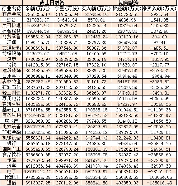 表:7月20日申萬一級行業兩融交易情況