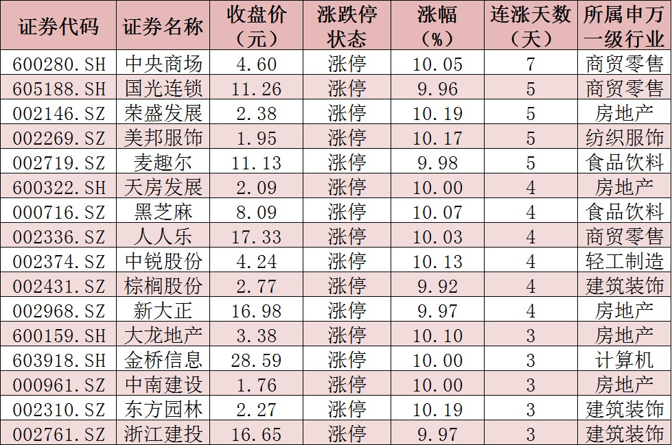 表:連續上漲3日以上且今日收盤漲停個股情況: