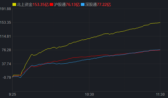 從資金面來看,7月25日上午,北上資金凈買入金額達153.35億元,其中,滬股通凈買入76.13億元,深股通凈買入77.22億元。