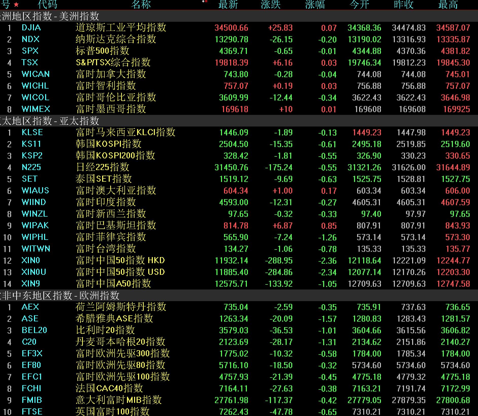 周五,美國三大股指收盤漲跌不一,道指漲0.07%報34500.66點,標普500指數跌0.01%報4369.71點,納指跌0.2%報13290.78點。本周,道指跌2.21%,標普500指數跌2.11%,納指跌2.59%;標普500指數和納指錄得周線三連跌。