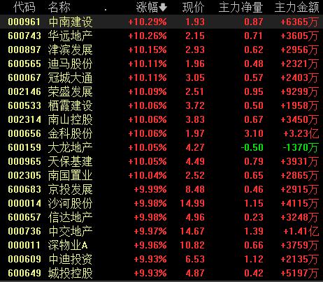 具體看,截至8月28日上午收盤,房地產開發板塊漲幅居首,達6.87%。其中,包括中南建設、華遠地產、津濱發展、迪馬股份等在內的24只個股漲停。