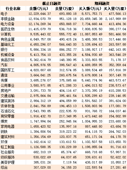 表:8月29日申萬一級(jí)行業(yè)兩融交易情況